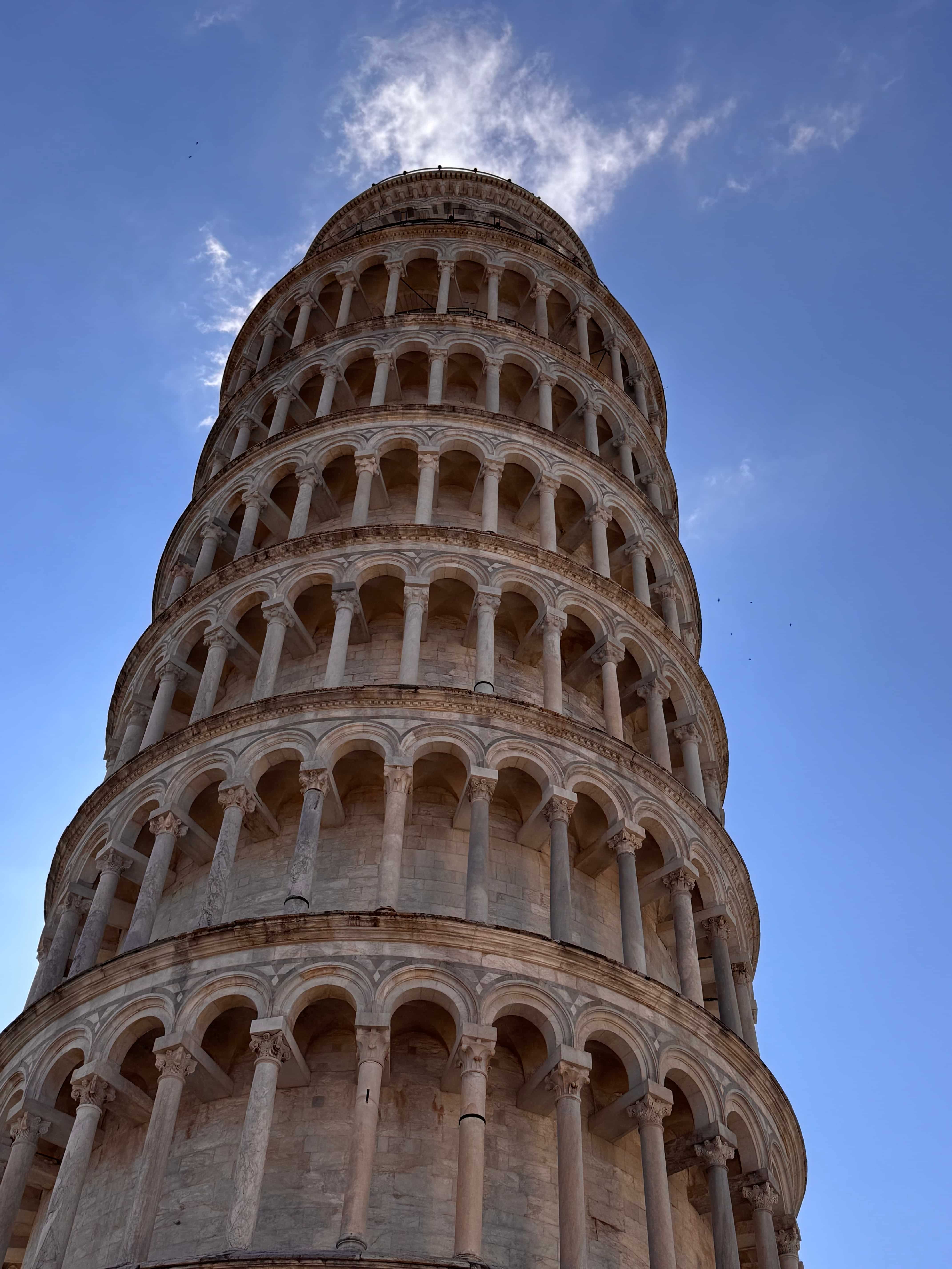 La Tour de Pise (en italien : Torre di Pisa) est le campanile de la cathédrale Notre-Dame de l’Assomption de Pise. Elle est située à proximité du chevet de la cathédrale et fait partie des monuments de la Piazza dei Miracoli (la « Place des Miracles »), inscrite au patrimoine mondial de l'UNESCO. Sa construction débuta en 1173. Mondialement connue, elle est un des symboles de l’Italie et l’emblème de la ville de Pise. Construite dans le style roman, la tour est haute de 56 m côté sud et de 58,50 m côté nord du fait de son inclinaison, et a un diamètre externe de 15 mètres à sa base. Sa masse estimée est de 14 500 tonnes. Cette tour creuse, de diamètre interne de 7,4 mètres (4,2 m au sommet), est composée de deux cylindres en pierre concentriques entre lesquels court un escalier en colimaçon de 293 marches. On a affiné les murs de la partie affaissée de la tour afin d’en freiner la chute. Entre chacun des 8 étages, des colonnes de marbre de Carrare servent de support, et de nombreuses sculptures sont visibles. La porte est décorée de sculptures d’animaux et autres grotesques de style roman.